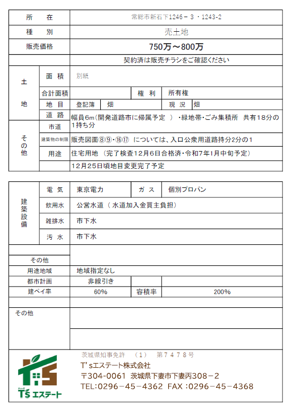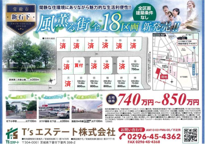 | 物件名 | 茨城県常総市新石下分譲地売地 |
